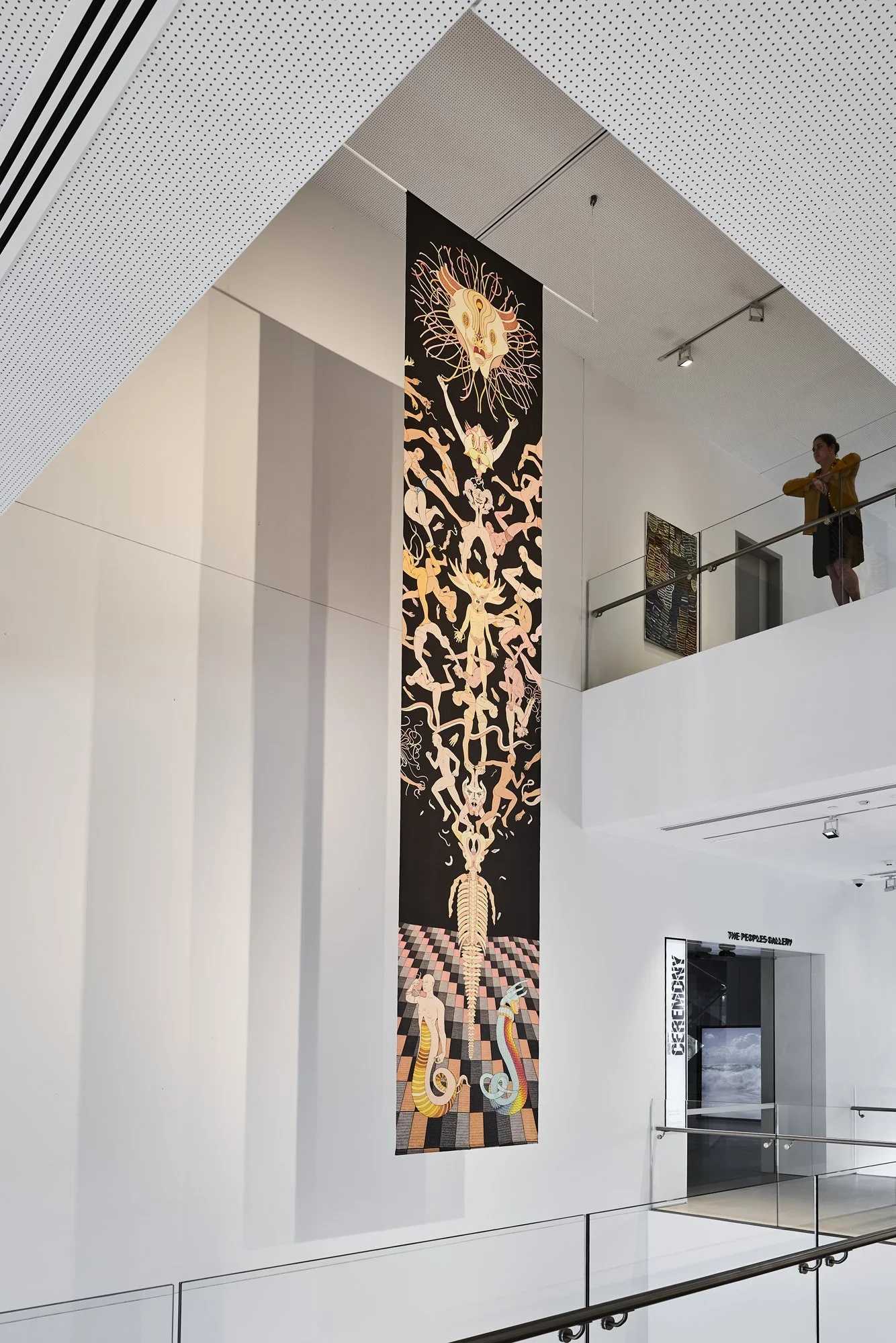 I’m drawn to how this resonates with my own work. They can carry cosmologies, grief, protest and devotion. Johnson’s quilts and banners feel like portals, but also warnings; tactile, beautiful reminders that belief systems, like fabrics, are always being stitched, unpicked, and remade.